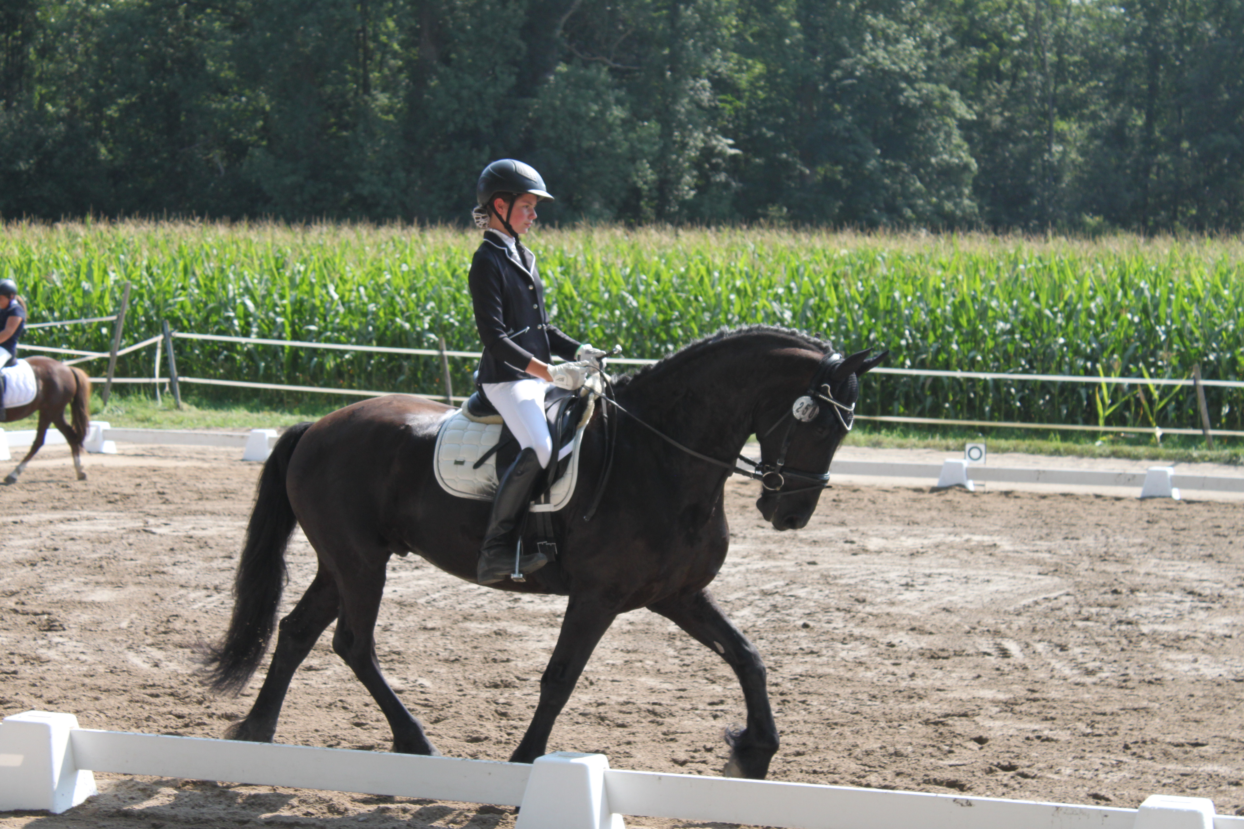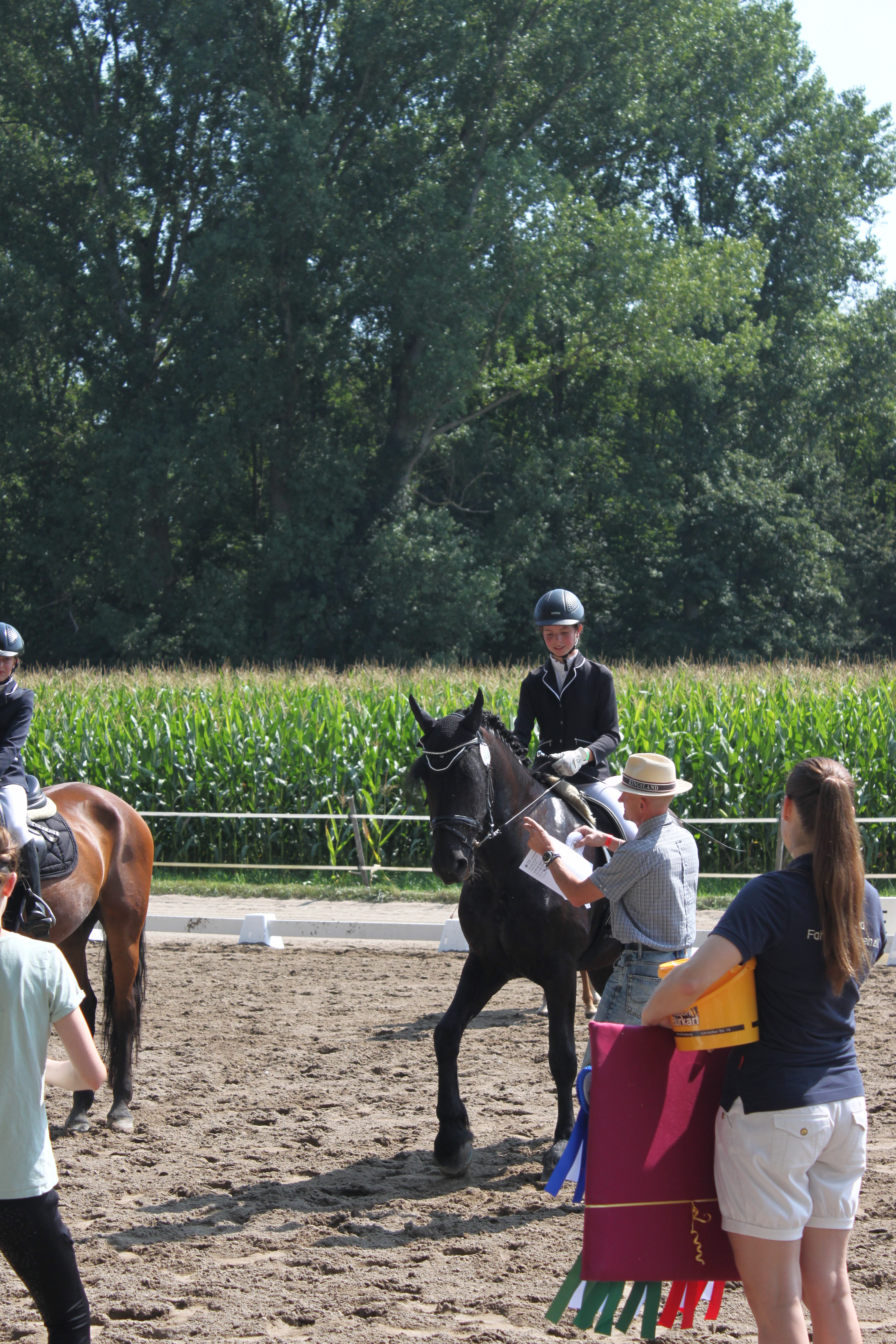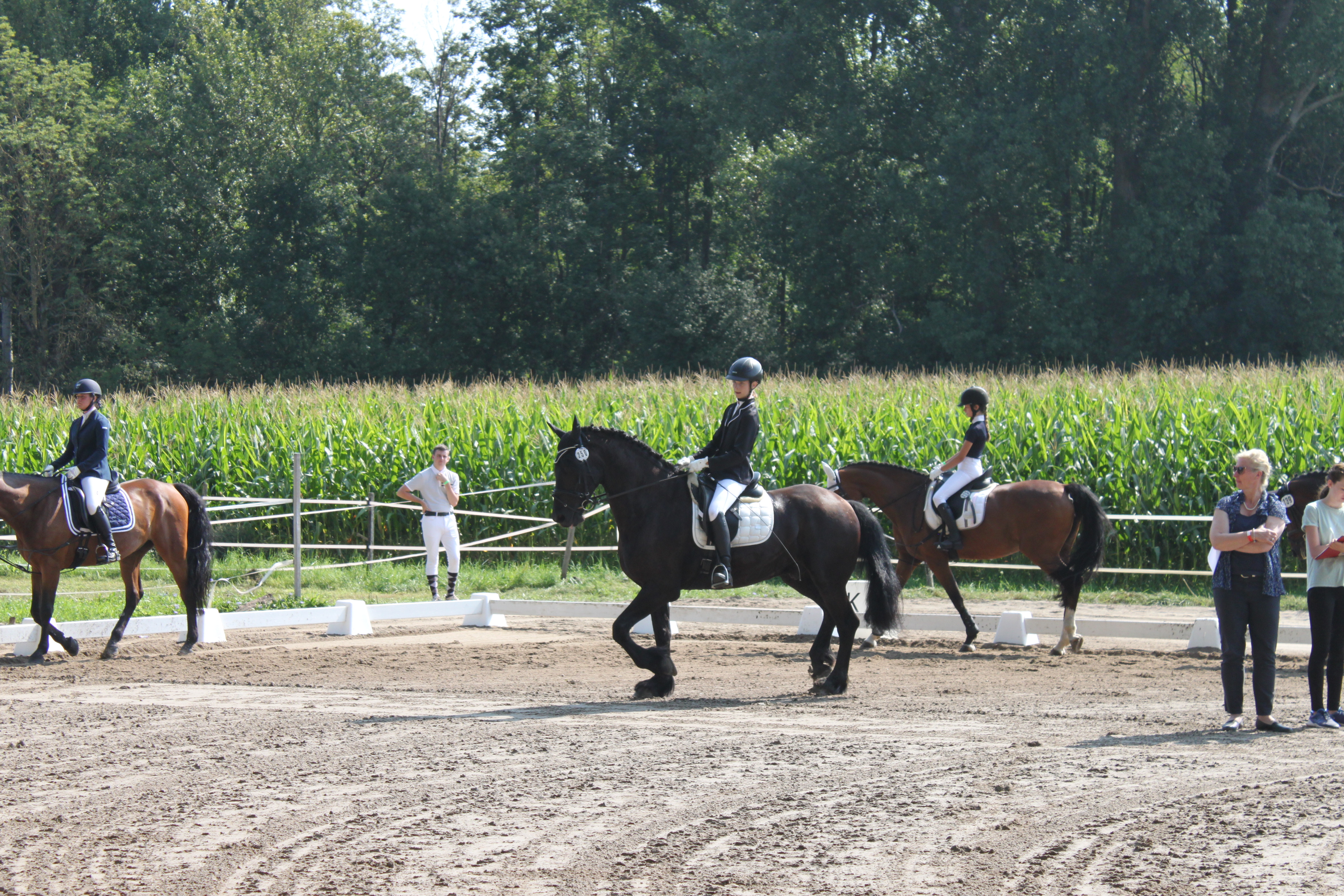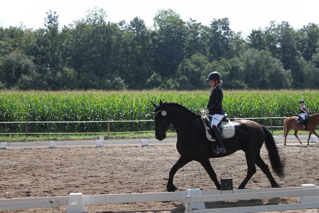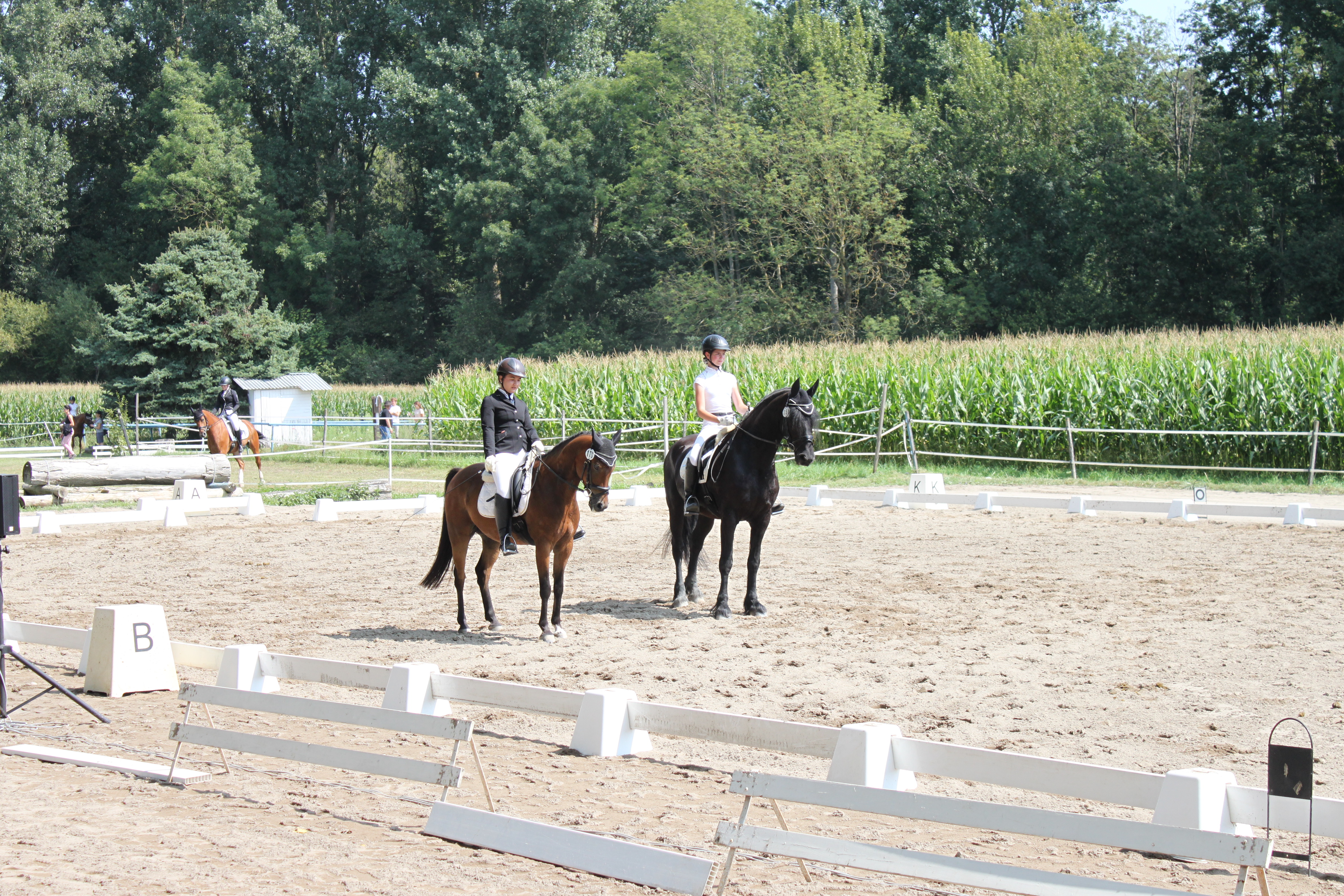 Im Anschluss daran nutze Lea-Sophie die Chance und startete mit Kali im Dressurwettbewerb der E-Klasse, um hier erste Erfahrungen zu sammeln. Dass jede neue Klasse wieder neue Herausforderungen mit sich bringt wurde hier deutlich. Trotz zweimaligen Verreiten konnten sich die beiden mit einer respektablen 6,2 im Mittelfeld platzieren.