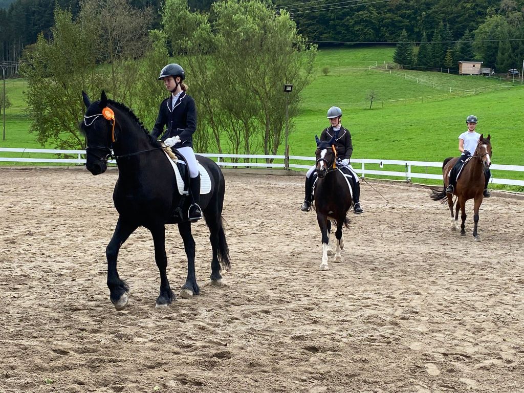 Vor den strengen Augen der erfahrenen Richterin Frau Eble gingen Lea-Sophie, Lina und Luisa an den Start. Eine Starterin musste leider krankheitsbedingt absagen. Hatten diese Teilnehmerinnen noch mit den letzten Regenschauern zu kämpfen, so machte der Himmel im Verlauf dieser Prüfung dann doch noch auf, und das Wetter wurde zunehmend besser.