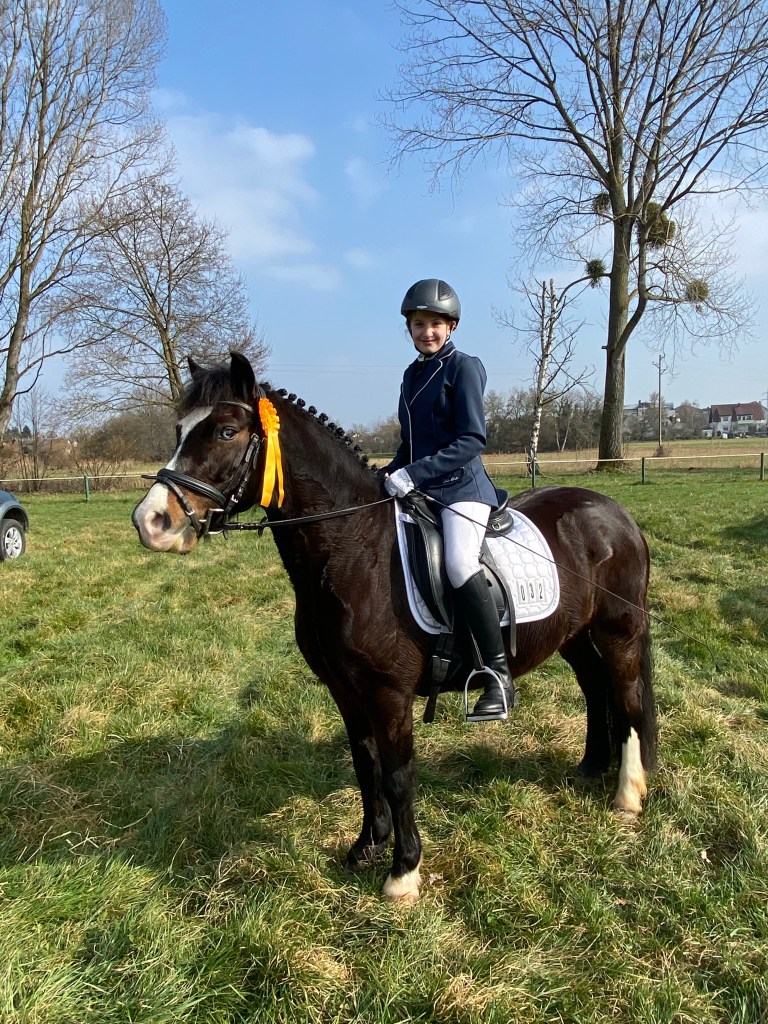 Den Abschluss des heutigen Turniertages machte dann Emma mit Nick im Schritt-Trab-Wettbewerb. Auch die beiden ließen nichts anbrennen und sicherten sich mit einer 7,5 ebenfalls die goldene Schleife für den ersten Platz in ihrer Abteilung.