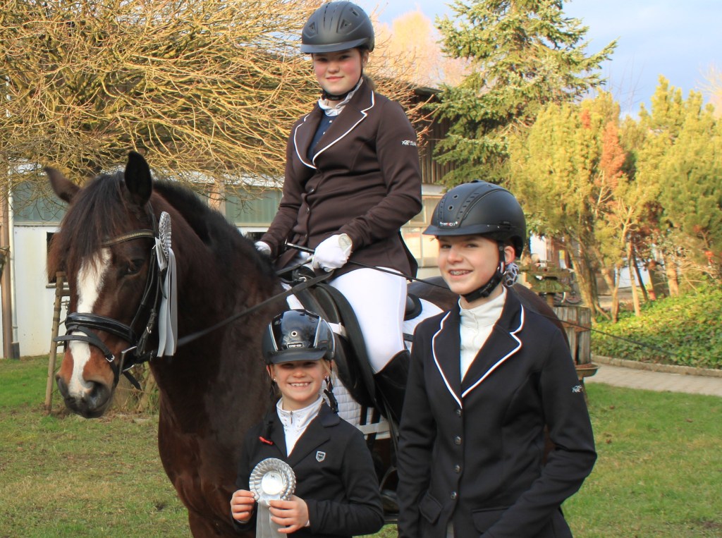 Unsere 2011 geborene Lewitzer-Stute Milka ist eine hübsche Braunschecke, die Ihre Reiter zuverlässig durch die Prüfungen trägt.