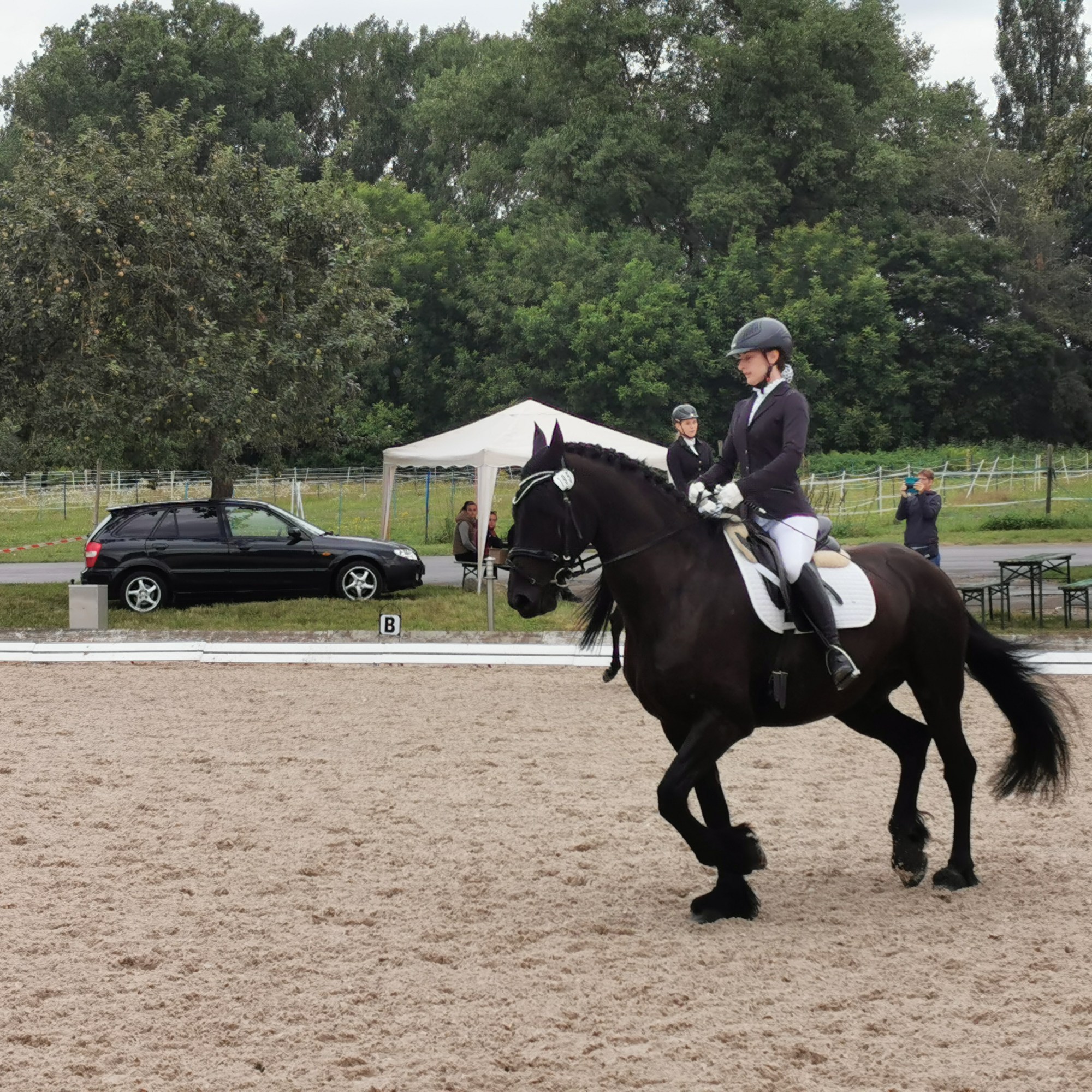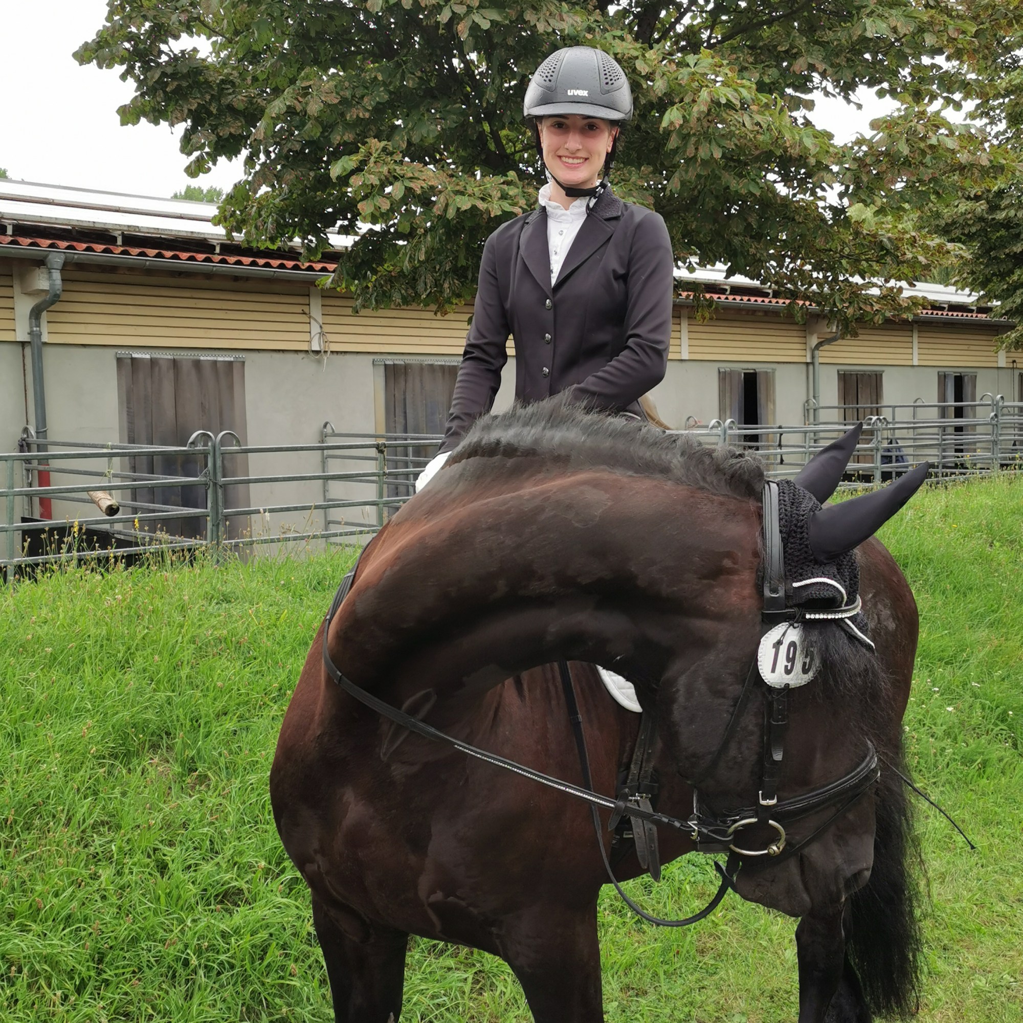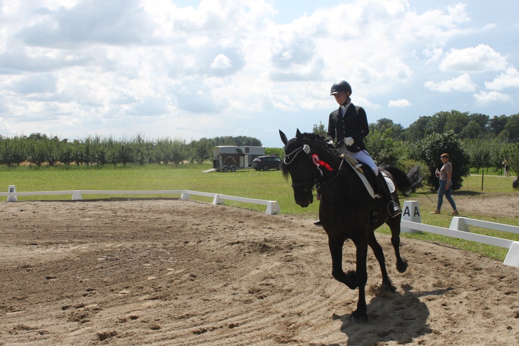 Auf den Turnieren ist der „imposante Friese“, wie er von Zuschauern immer wieder genannt wird, ein echter Hingucker. Manchmal macht er seinen Reiterinnen das Leben damit schwer, dass er neue Sachen furchtbar gruselig findet, und dann auch mal vergisst, dass er sich gerade in einer Prüfung befindet. Mit zunehmender Erfahrung wird das aber schon deutlich weniger.