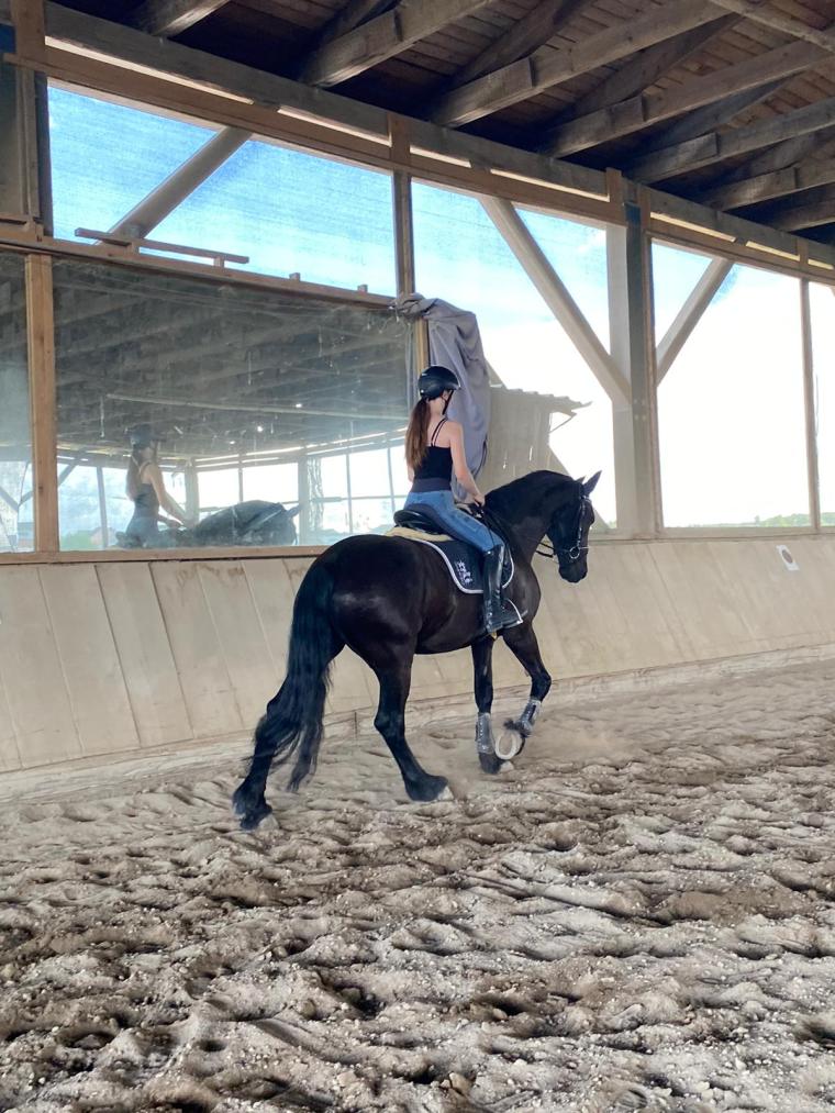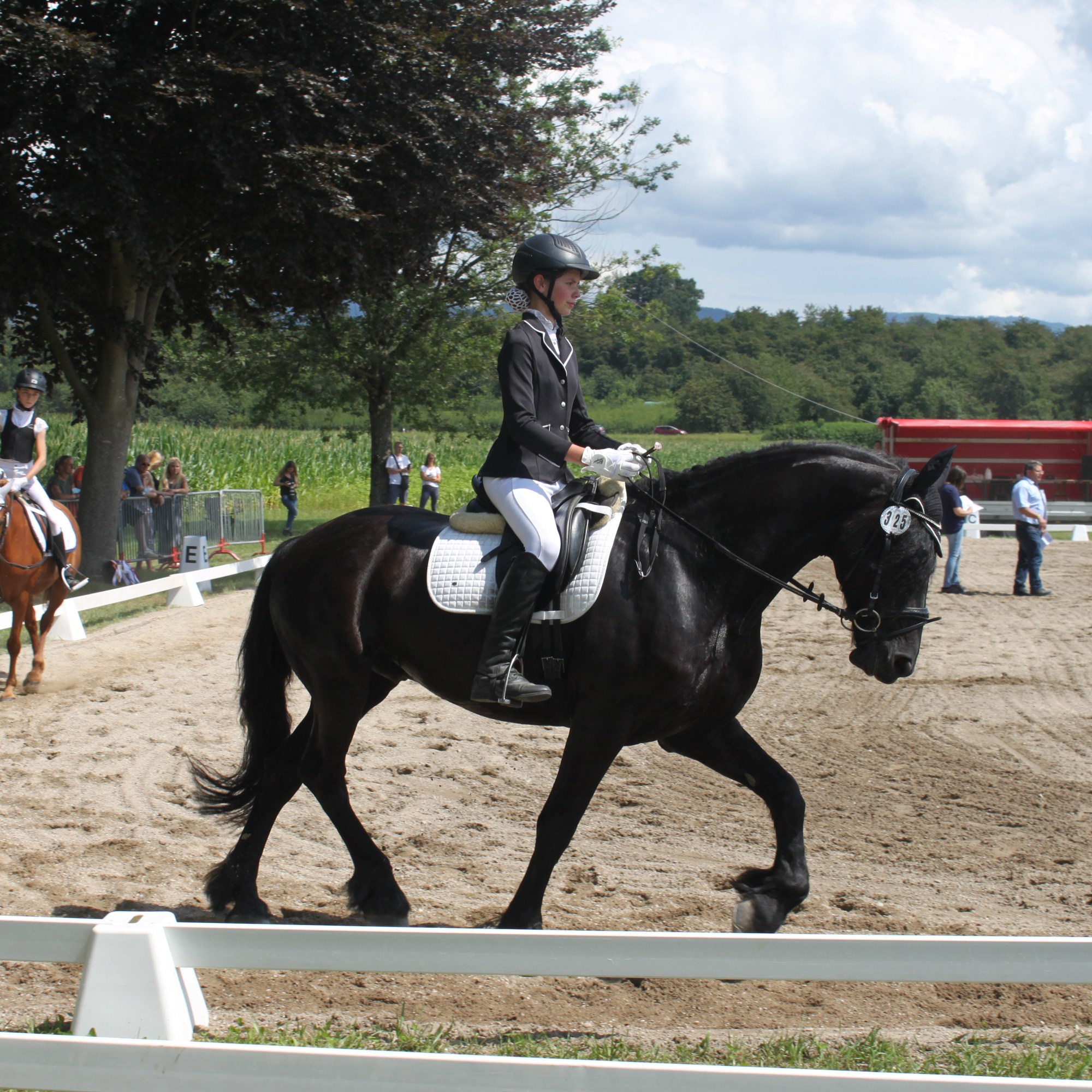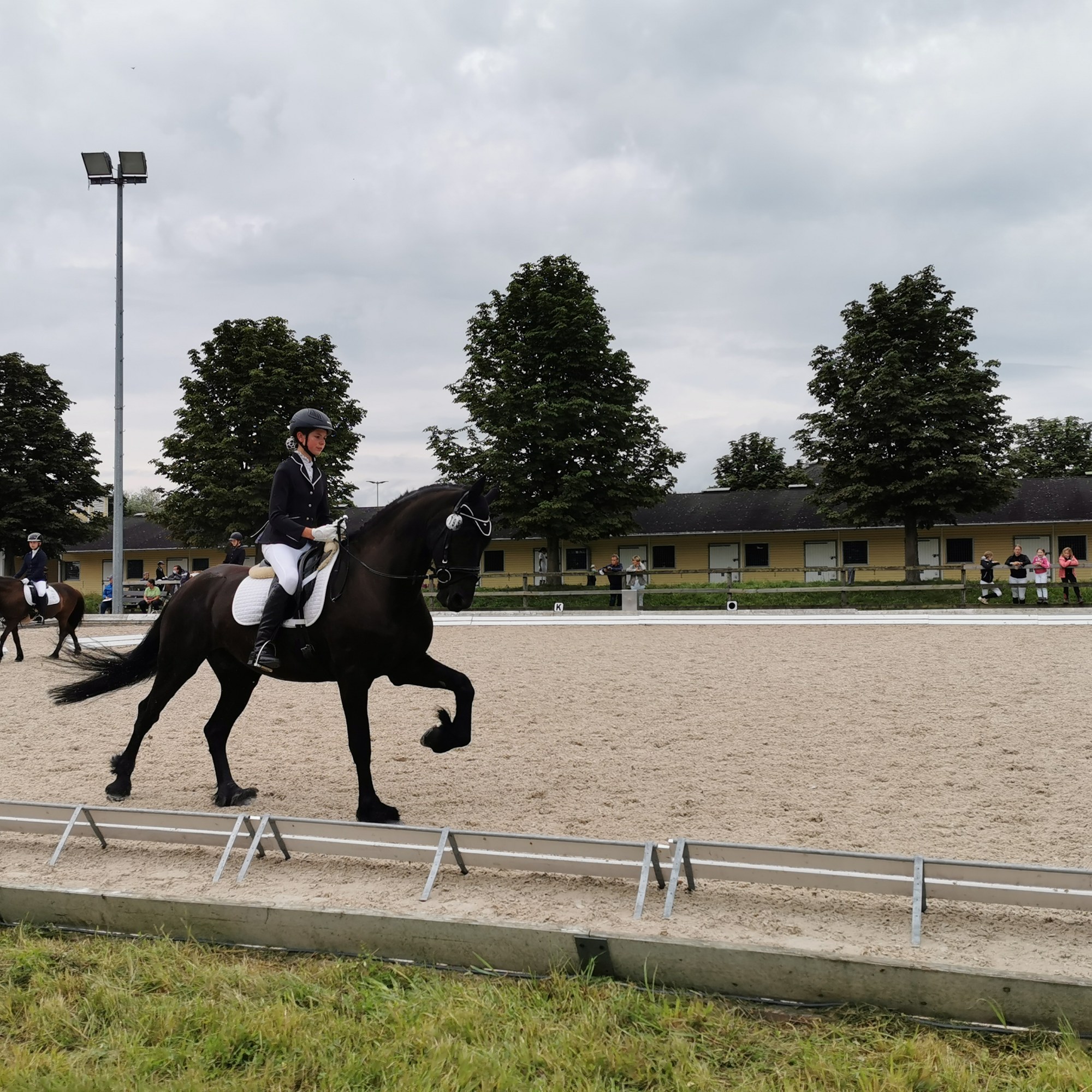 Auf den Turnieren ist der „imposante Friese“, wie er von Zuschauern immer wieder genannt wird, ein echter Hingucker. Manchmal macht er seinen Reiterinnen das Leben damit schwer, dass er neue Sachen furchtbar gruselig findet, und dann auch mal vergisst, dass er sich gerade in einer Prüfung befindet. Mit zunehmender Erfahrung wird das aber schon deutlich weniger.